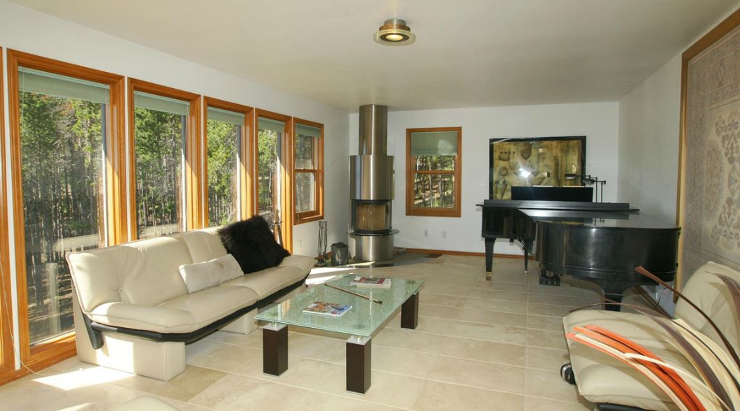 A Beautiful and Moderm Living Room. A pleasant space with a grand piano, fireplace and modern furniture